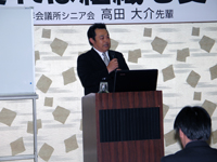 講師には社団法人射水青年会議所シニアの高田大介先輩をお招きし、「人が変れば組織も変る」をテーマにご講演いただきました。高田先輩は、社団法人射水青年会議所の初代理事長で、富山ブロック協議会2007年度第38代会長も務められました。その経験をもとに活動を行なう中でJCの魅力、価値観を見出したこと、仕事、家庭、地域活動への変化を伝えて頂きました。
