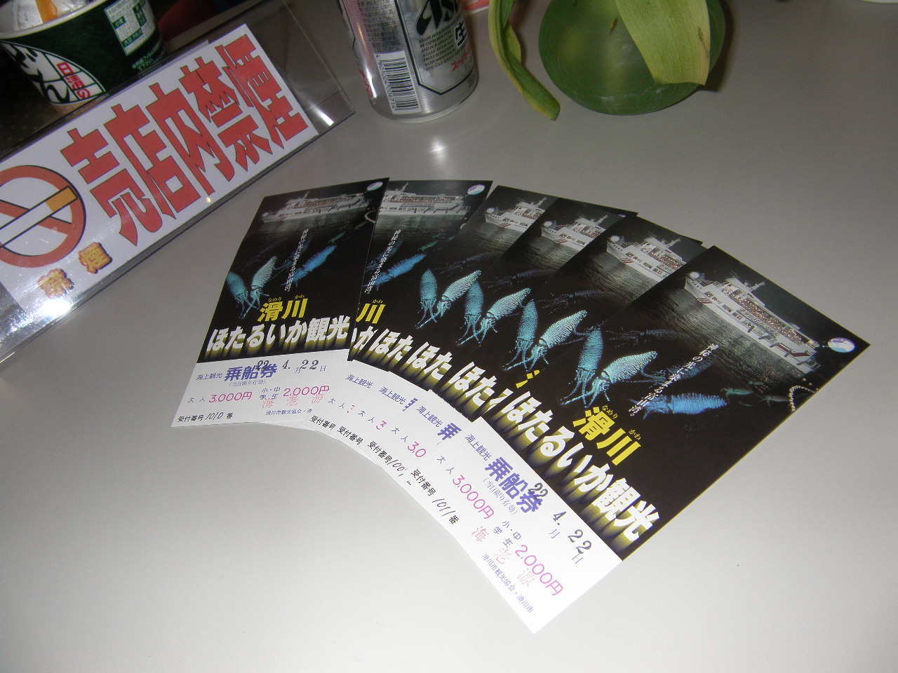 例会(懇親会)後は、講師にはサプライズのプレゼントが用意されていました。それは「なめりかわ海上ほたるいか観光」。2時半まで講師の高田先輩を寝かせずに飲みに誘い、いざ集合場所へ。