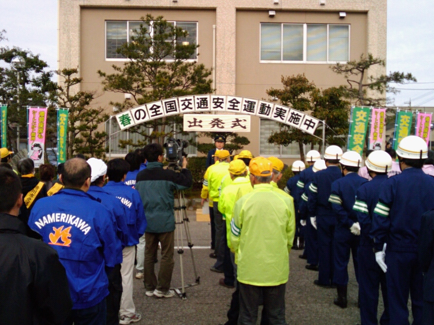 最後に竹原理事長も交通安全協会青年部会長として、シュート。見事決まり、警察署のパトカー、そして交通安全協会の各支部がそれぞれそれぞれの持ち場に立ち、交通安全を呼びかけた。