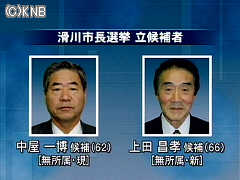 滑川市長選挙に立候補したのは、届け出順に、無所属の現職、中屋一博・候補(62)と無所属の新人で元市議会議員の上田昌孝・候補(66)の2人です。