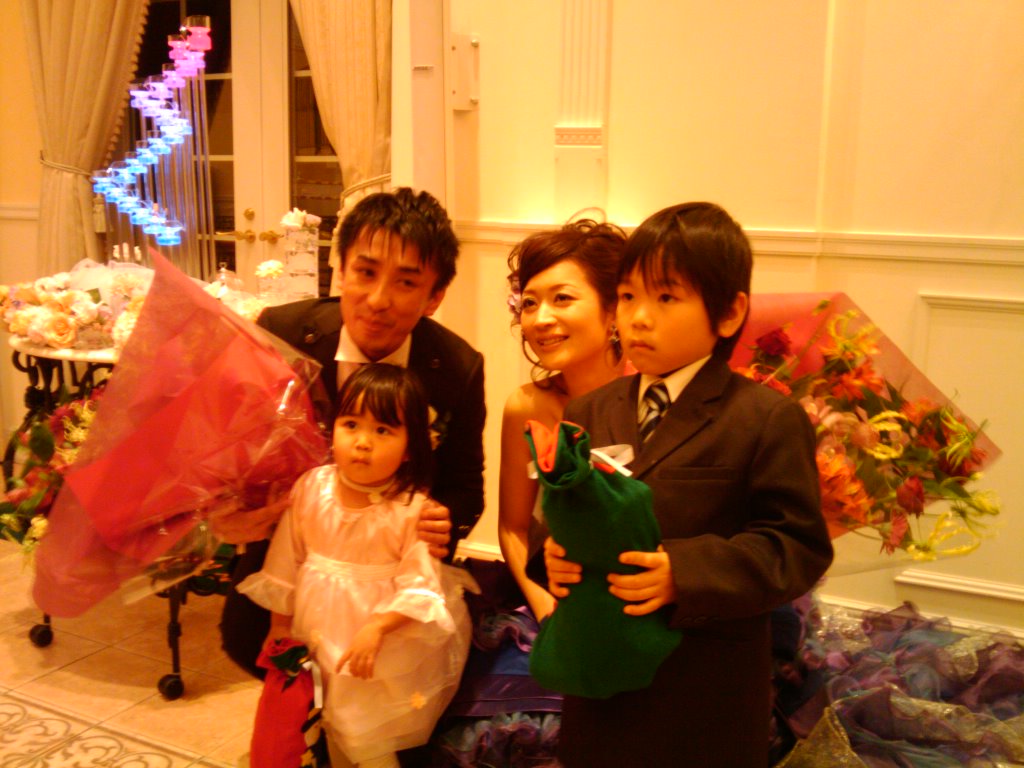 結婚式は、もともと花嫁のためのもの。花婿はその引き立て役。その役割もしっかりとこなし(?)、新郎のスピーチでは、星名先輩の「パーフェクトファミリー!?」ネタを伏線として使い、良いところを全て持って行ってしまった。また、新郎の話で涙する場面もあった。お見事!!(これで将来理事長もできる!)