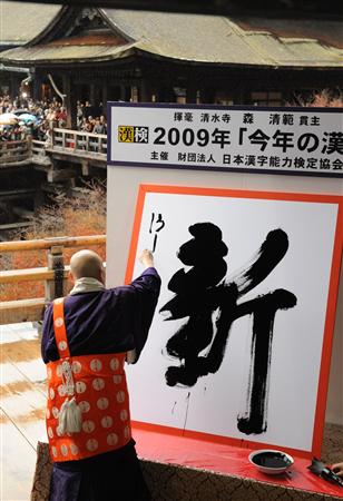 「新」が選ばれたのは、さまざまな「新しいこと」に期待し、希望を抱いた1年で、政権交代で新内閣が発足し政策、行政が刷新。裁判員制度や高速道路料金割引制度などさまざまな新制度がスタートしたことなどを反映。また、米大リーグ・マリナーズのイチロー選手や水泳競技での新記録ラッシュや、新型インフルエンザの流行で新薬が登場したことなども理由にあげられた。
