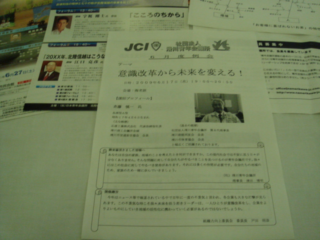 組織力向上委員会が企画した講演会である。講師に斉藤慎一氏をお招きして「意識改革から未来を変える!」をテーマに講演していただく。斉藤氏は広進工業株式会社の代表取締役社長、滑川商工会議所会頭を務めておられ、また我々社団法人滑川青年会議所のシニア、歴代理事長(第8代)でもある。