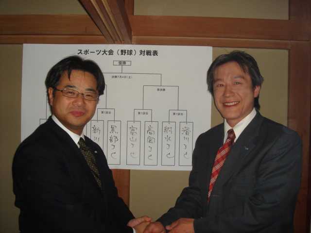 会議のあと懇親会を行ったが、やはり会議では言えないことなどを伝える上で必要な時間だと感じた。会議で言われた答えを求める姿や、なぜこういったかを説明する姿もあり、酒を交えながら良い交流の時間となった。また毎年恒例のブロック野球大会の予選抽選会の時期でもあり、抽選を行い、対戦相手が決まった。滑川JCは宿敵射水JCとの因縁の対戦(初戦射水JCと当たることが多い)となる。ローカルルールで1回の裏表は理事長がピッチャーを務めるのが決まりであり、そこを攻略することで勝敗が左右される。ひそかに練習しなければならないようだ。