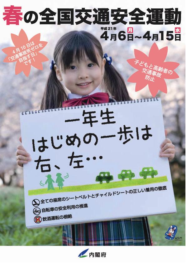 4月6日より4月15日まで春の全国交通安全運動が実施される。スローガンは「ゆずりあう 心でひろがる 無事故の輪」。新小学生が誕生する時期であり、子どもの交通安全も重点的に事故防止を心掛けなければならない。