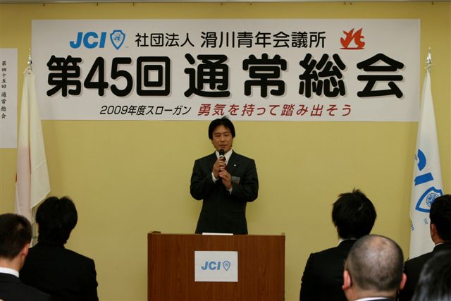 通常総会では、JCI会頭ほか多数の来賓の挨拶のあと、2008年度の補正予算案、2009年度の収支予算案が審議事項として審議された。昨年度の通常総会ではかなり質問があった気がしたが、本年度は滞りなく議事が進行し承認された。