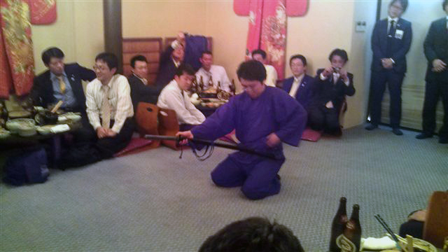 ブロックナイトは何とか間に合って、みんなと合流できた。各理事長は各LOMにおいて総会での役割を終え、ほっとした感があり、同じ境遇を乗り切った話で盛り上がる。そしてブロックは、事実上この日がスタートとなる。張田ブロック会長からはその思いを話して1年間ともに活動する仲間たちと楽しい夜を過ごした。余興として立野事務局長による居合が披露された。富山JCの松井理事長によると、「お前らの意見なんかぶった切る」という県内LOM理事長に対しての宣戦布告らしい(冗談だが。。。)